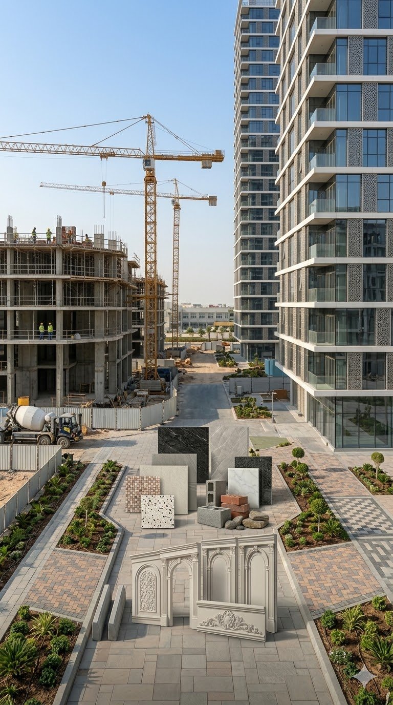 نقدم مجموعة متكاملة من منتجات مواد البناء والتشطيبات مثل الإنترلوك، البردورات، البلاط، والرخام، مع الالتزام بأعلى معايير الجودة لتلبية احتياجات المشاريع السكنية والتجارية.
